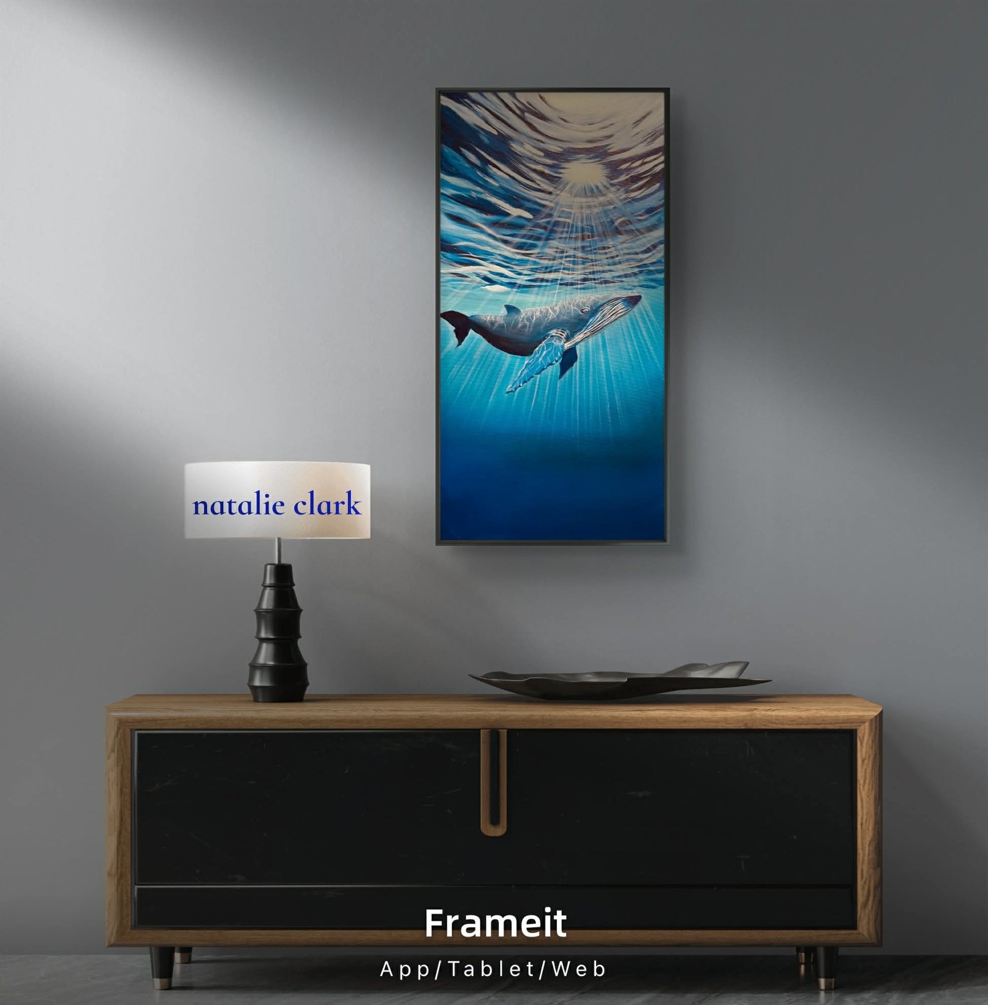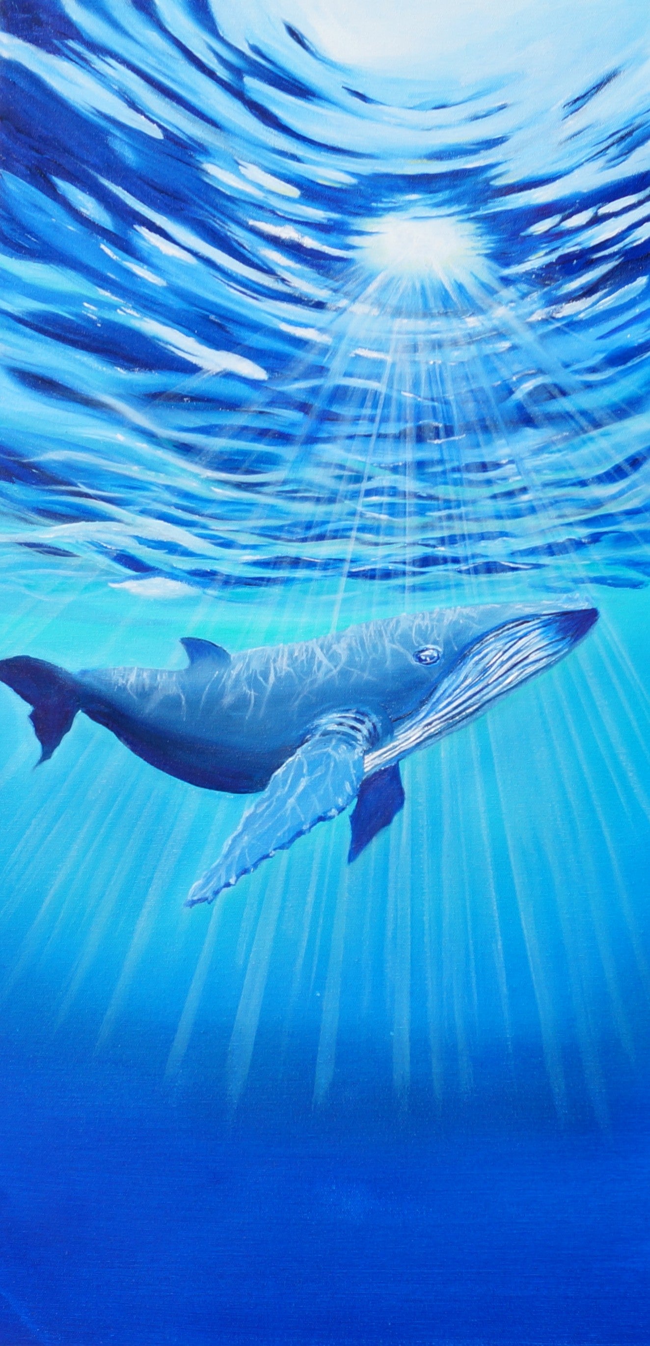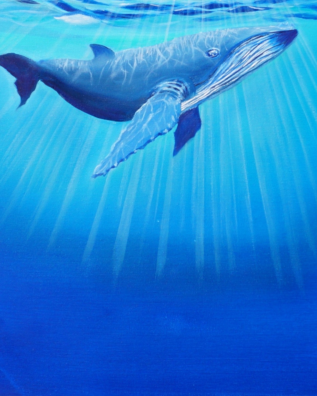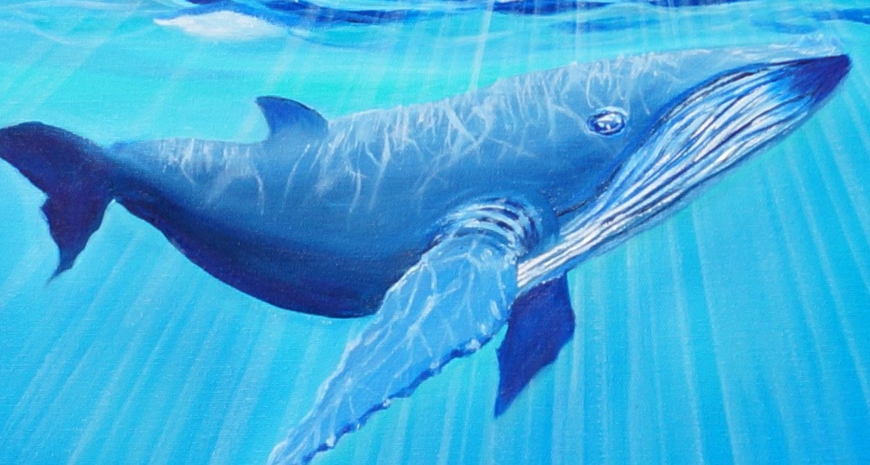 Dans la profondeur des mers, une baleine glisse.